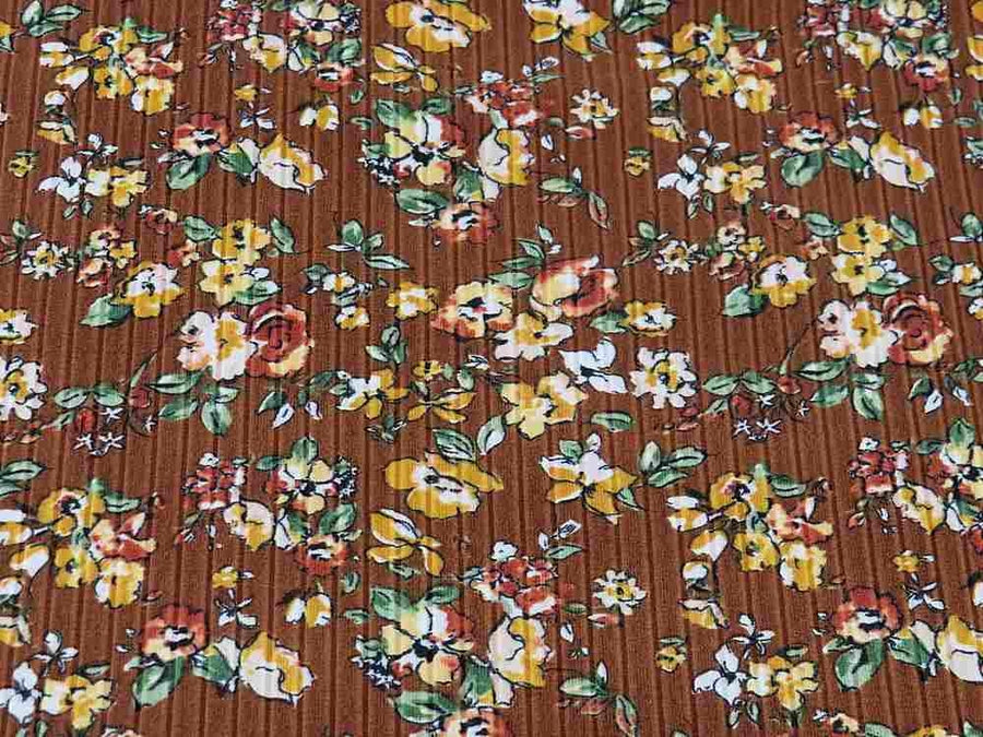 Admired for its aesthetic charm and ultra-soft texture, printed rib knit fabric is a popular choice among fabric enthusiasts. This fabric feels like a gentle embrace, making it a favorite among those who value comfort in their clothing choices. Furthermore, its highly stretchy nature allows it to conform to various body shapes seamlessly, offering a snug yet comfortable fit.